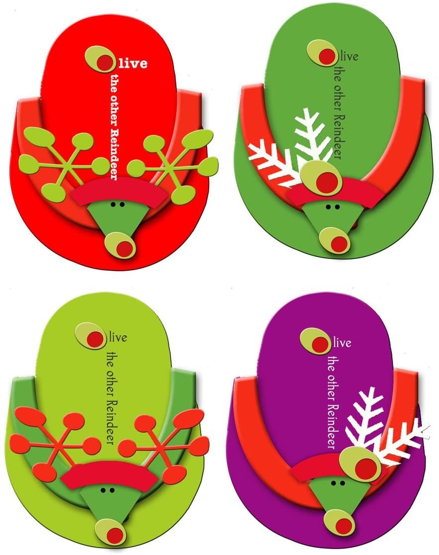 Flip Flop Coasters - Packaged Set of 4 by Drinkwear (Green Red Purple - Reindeer)