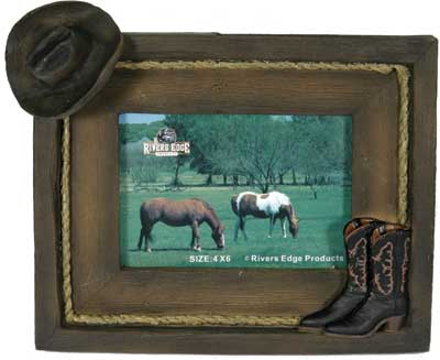 This horse themed frame is a great way to show off your favorite horse or horseback riding friend. It holds one 4” x 6” photo and has a glass insert.