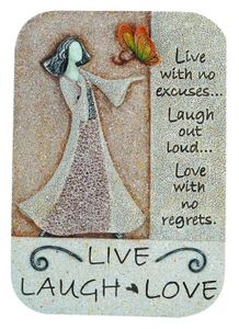 Say you care with this Live, Laugh, Love Artstone Inspirational Plaque. This intricately carved Artstone Plaque is approximately 5&1/2" x 3&7/8" in size.