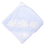 The 3 Marthas hooded towel and washcloth is made of pure cotton terry cloth. Measuring 38" x 38", the towel is so large that it can last well into the toddler years. The hood is embellished with an applique and is backed with terry cloth for extra absorbency. The washcloth measures 10" x 10" and is trimmed with a coordinating fabric. The towel is perfect for bath time or time at the beach or pool.