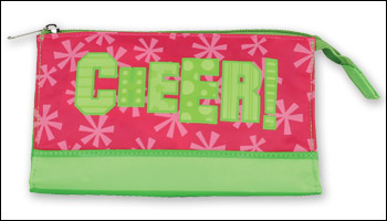 These colorful zippered bags are perfect for a child on-the-go! Just the right size for overnight or travel accessories, or tuck one into your child's backpack to hold their pens and pencils. Nylon Bag with puff screen-printed design. Measures approx. 3.75" h x 6.75" w x 3.25" d.