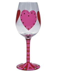 This wine glass by Lolita is perfect for the "Big Hearted Lover" in your life. The glass is a popular new shape appropriate for red or white wine. Its oversized 15 ounce capacity allows plenty of space for wine to breathe, allowing its full richness to unfold. The glass is hand painted with wonderful detail and includes a wine cooler recipe on the bottom. The colors are bright and are oven baked to ensure durability. Your wine glass will arrive in an elegant Lolita's unique gift box.