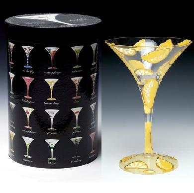 Santa Barbara Design Studios presents "Love my Martini" martini glasses by Lolita. Each hand painted Lolita Martini Glass features a design inspired by a delicious martini recipe, which is printed on the bottom of the glass! Your martini glass will arrive in an elegant and unique gift box. Enjoy a truly fun martini drinking experience and start your own collection!