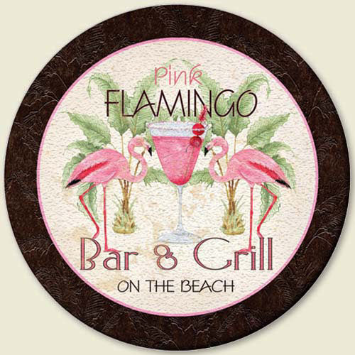 This beautiful "Flamingo Lounge" tempered glass Lazy Susan features the same great material and artwork as the companion cutting board, except it is larger and has a spinner base on the bottom for easy rotation.