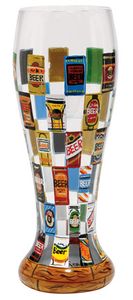 Beer Wall Pilsner Glass by Lolita is approximately 22 ounces and comes gift boxed. It has a surprise message waiting at the bottom of the glass. If you ever have or have wanted to be part of a beer can tower this is the perfect pilsner for you. It's also great for someone who appreciates more than one type of beer.