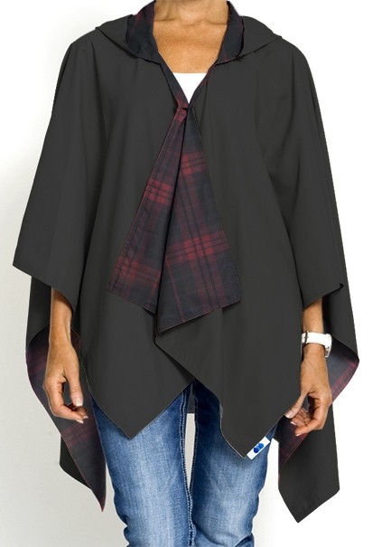 RainRaps Womens Water Resistant Lightweight Hooded Wrap Black and Red Plaid