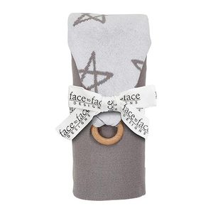 Welcome a new little one with this soft reversible blanket and mini blankie gift set! Blanket features the phrase 'A Star Is Born' and pairs with star mini blankie. The mini blankie includes an attached beech wood teething ring. Blanket is approximately 30"H x 40"W and made of 100% cotton.